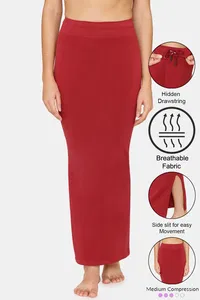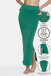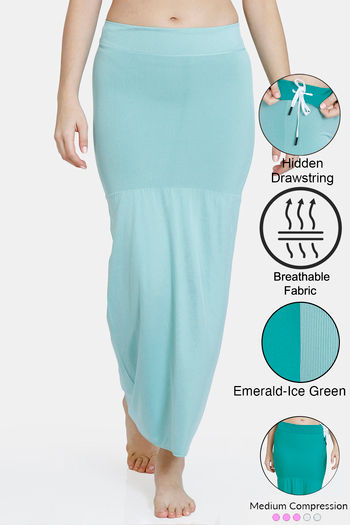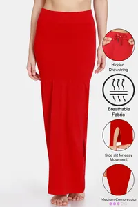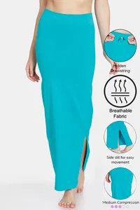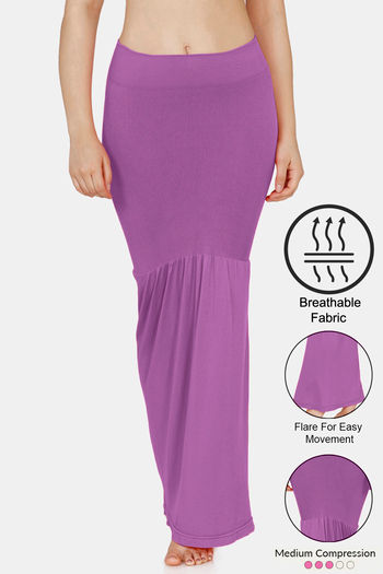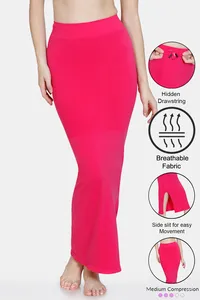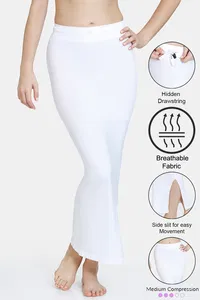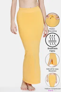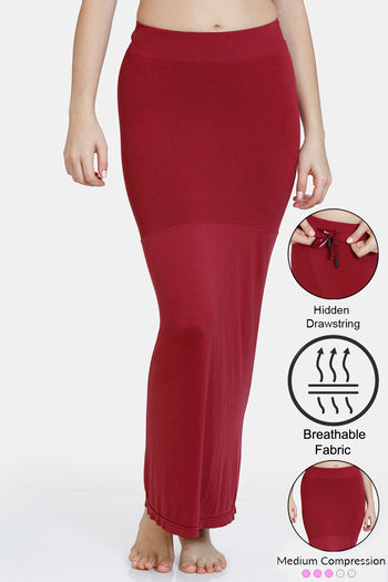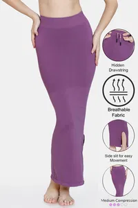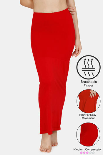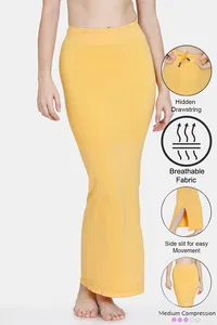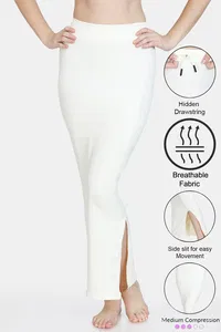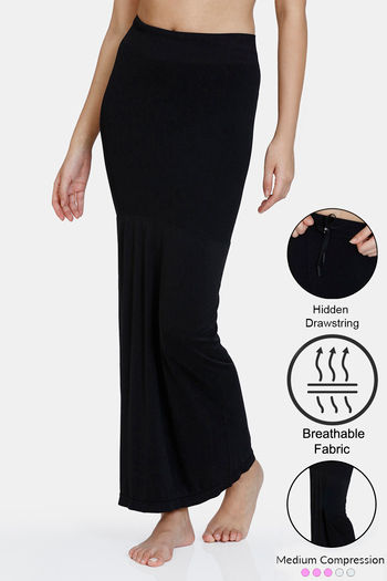 A saree petticoat can do much more than just hold your drape in place. Take a look at the Zivame saree shaping petticoat, and you will know how. This saree shapewear offers low, targeted compression around your stomach and thighs to give you a smooth and even-toned look under any six-yard beauty. This shaping petticoat is crafted with polyamide spandex fabric that offers a soft feel and lightweight comfort for up to 12 hours. It features a strong elastic waistband that holds the saree weight and also has side slits for easy movement. Slip into this mermaid fit saree shaping petticoat, and show off well-defined curves under your favourite saree..